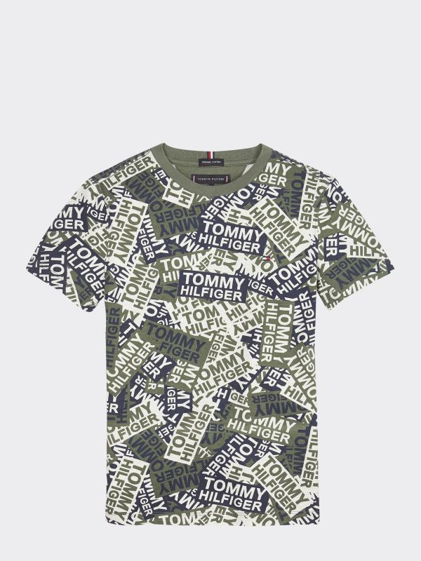 تفاصيل المنتج : • قطن جيرسي عضوي نقي • مطبّع بالشعار بالكامل • ياقة مستديرة • علامة تومي هيلفيغر • علم تومي هيلفيغر مطرّز على الطرف