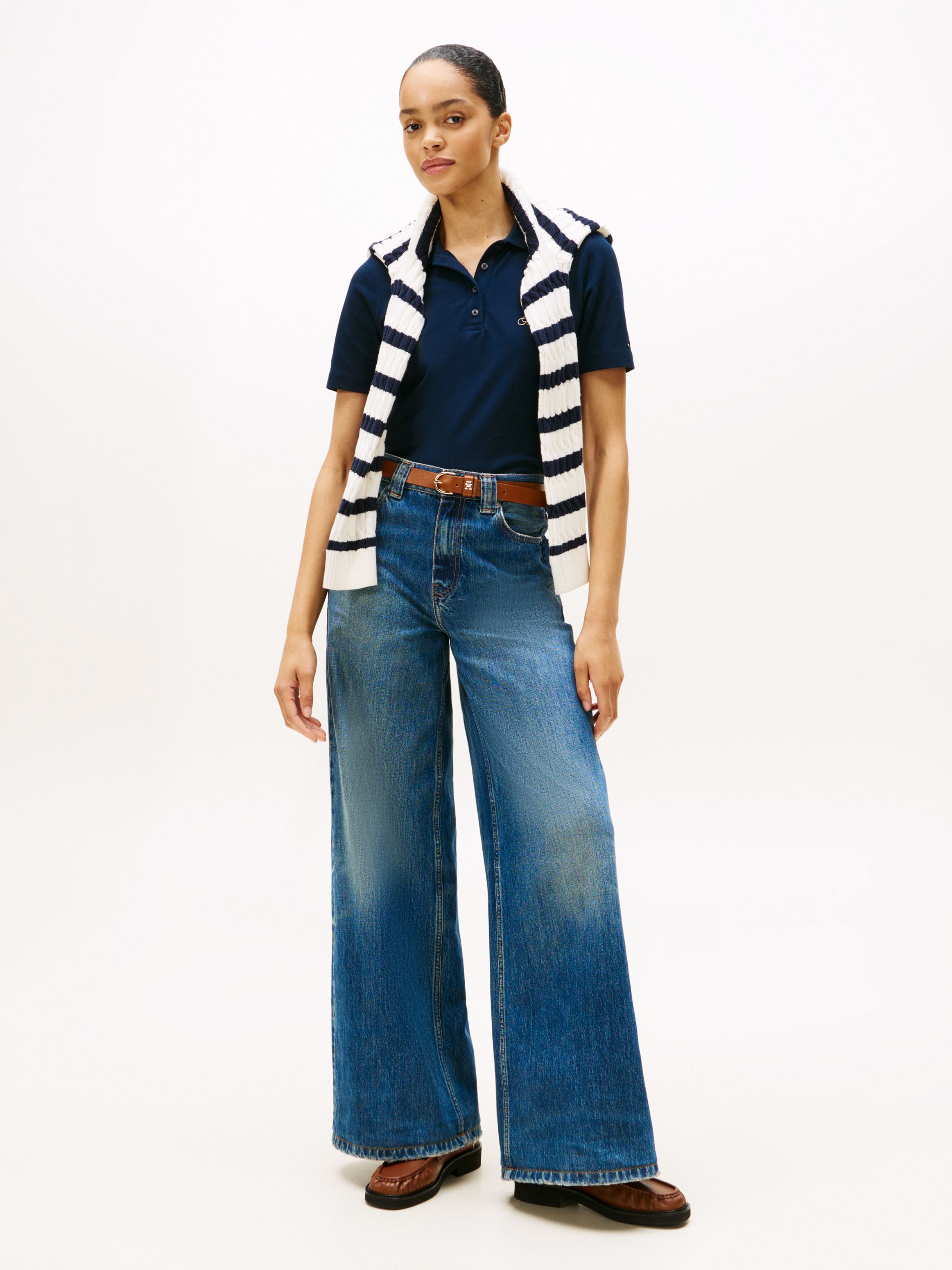 قميص بولو مزين بتطريز شعار TH الذهبي على الصدر، ليضيف لمسة راقية لمجموعة ملابسك الكاجوال.