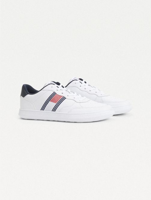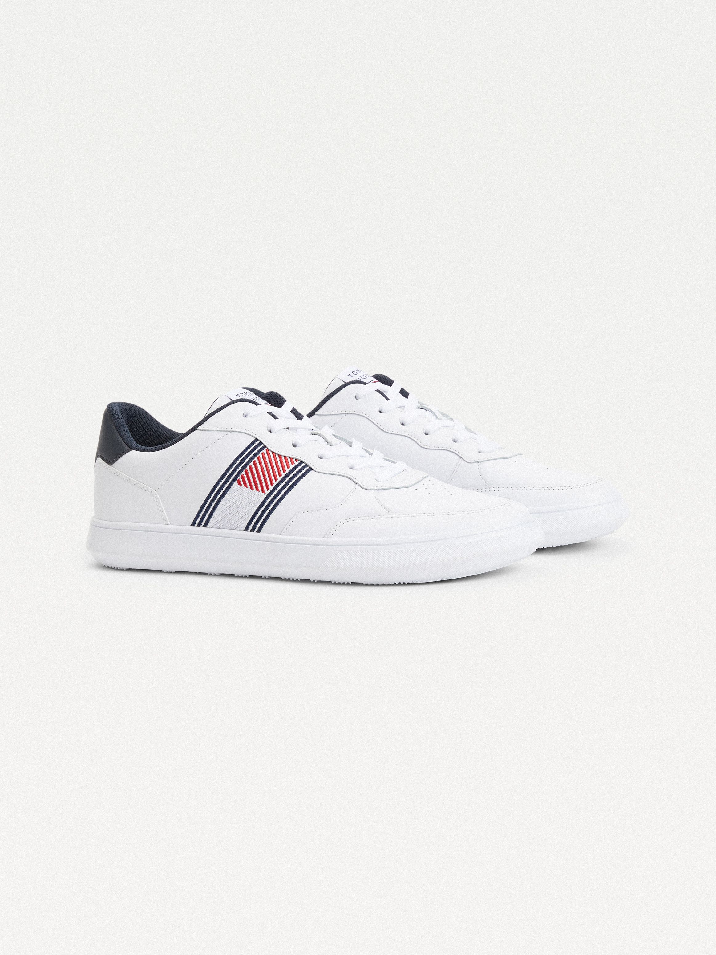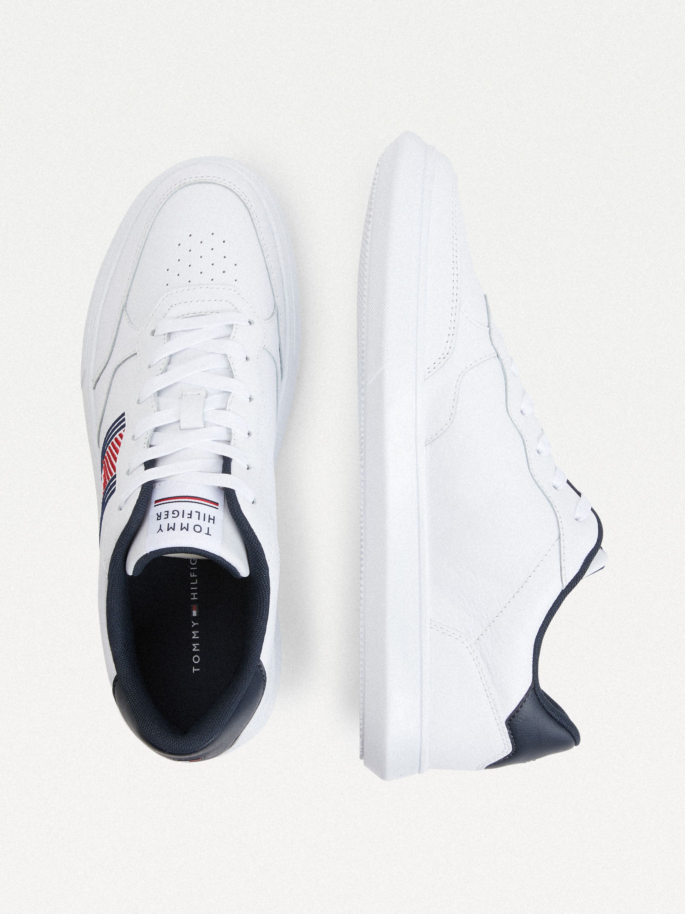 احصل على مظهر رائع مع هذا الحذاء الرياضي الجلد الكلاسيكي، الذي يتميز بنعل وتصميم أنيق من تومي هيلفيغر.