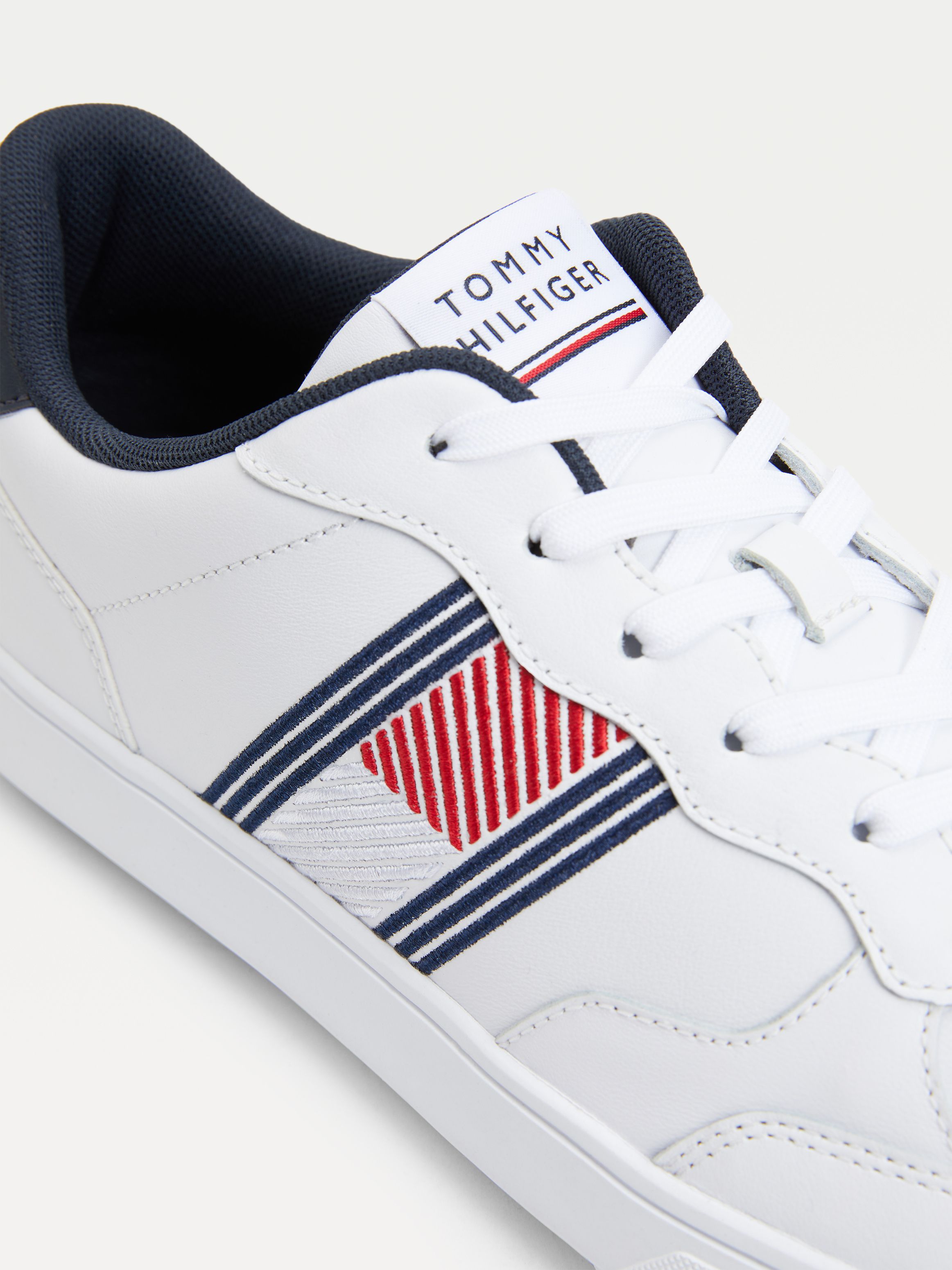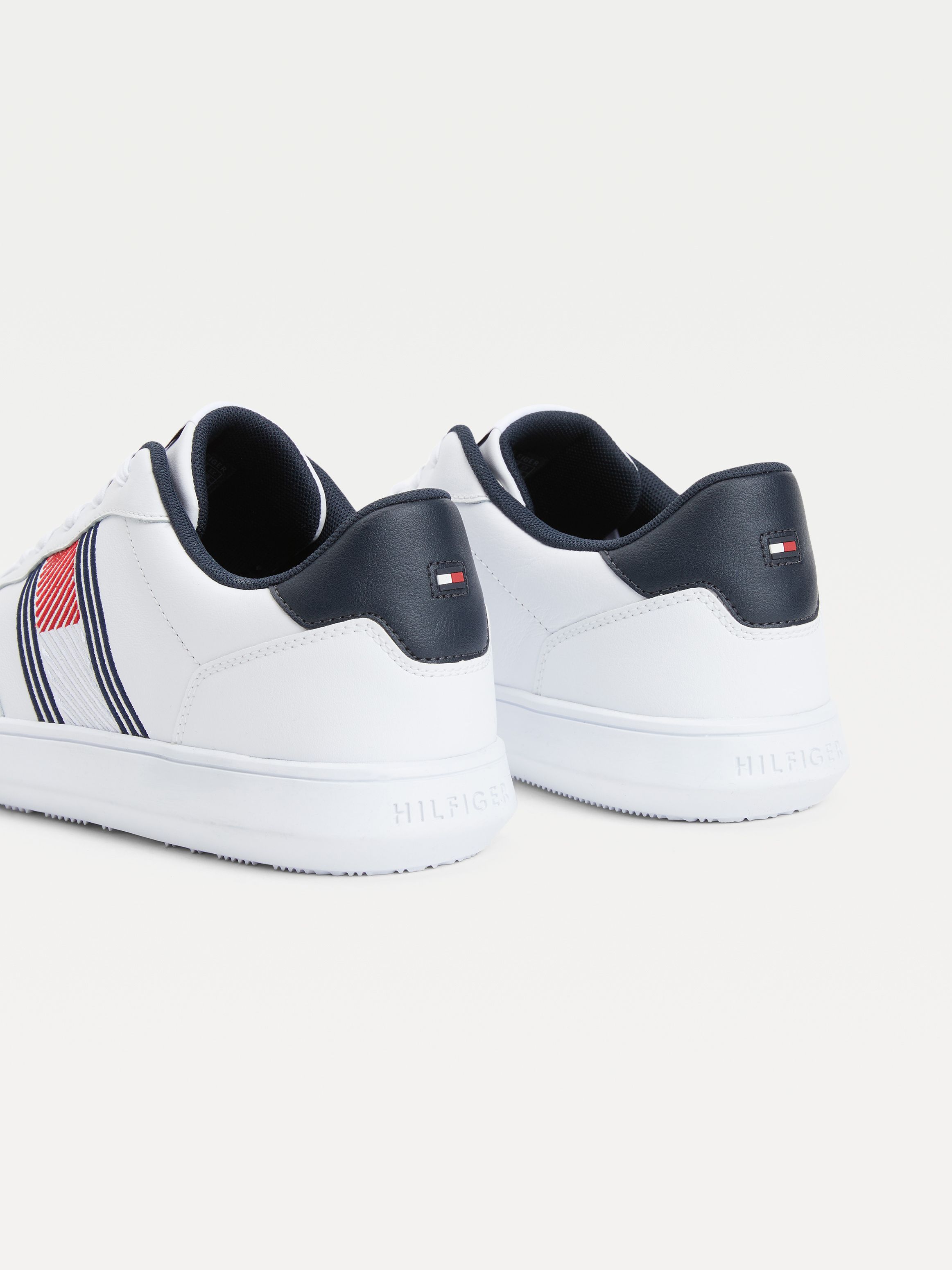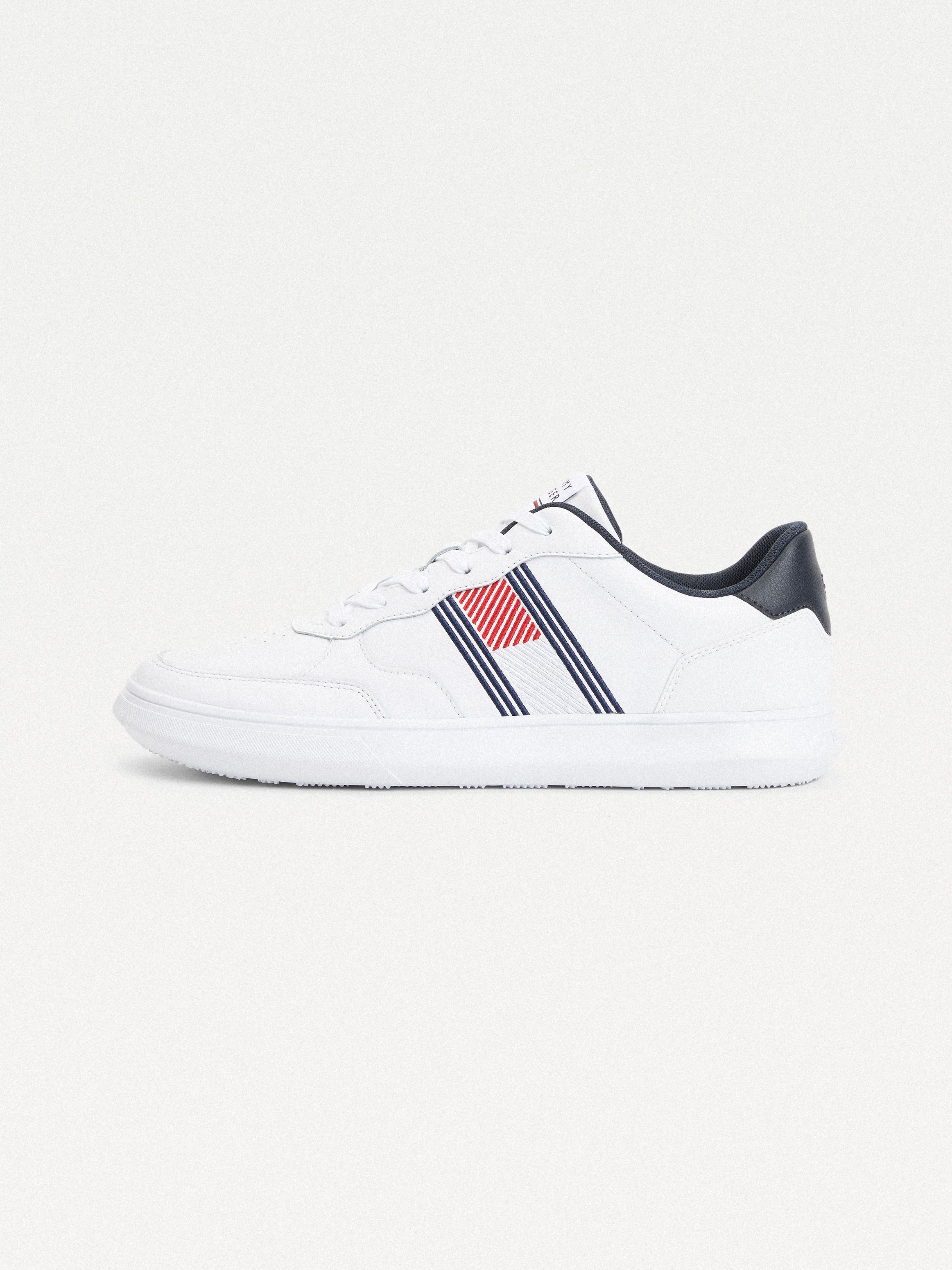احصل على مظهر رائع مع هذا الحذاء الرياضي الجلد الكلاسيكي، الذي يتميز بنعل وتصميم أنيق من تومي هيلفيغر.