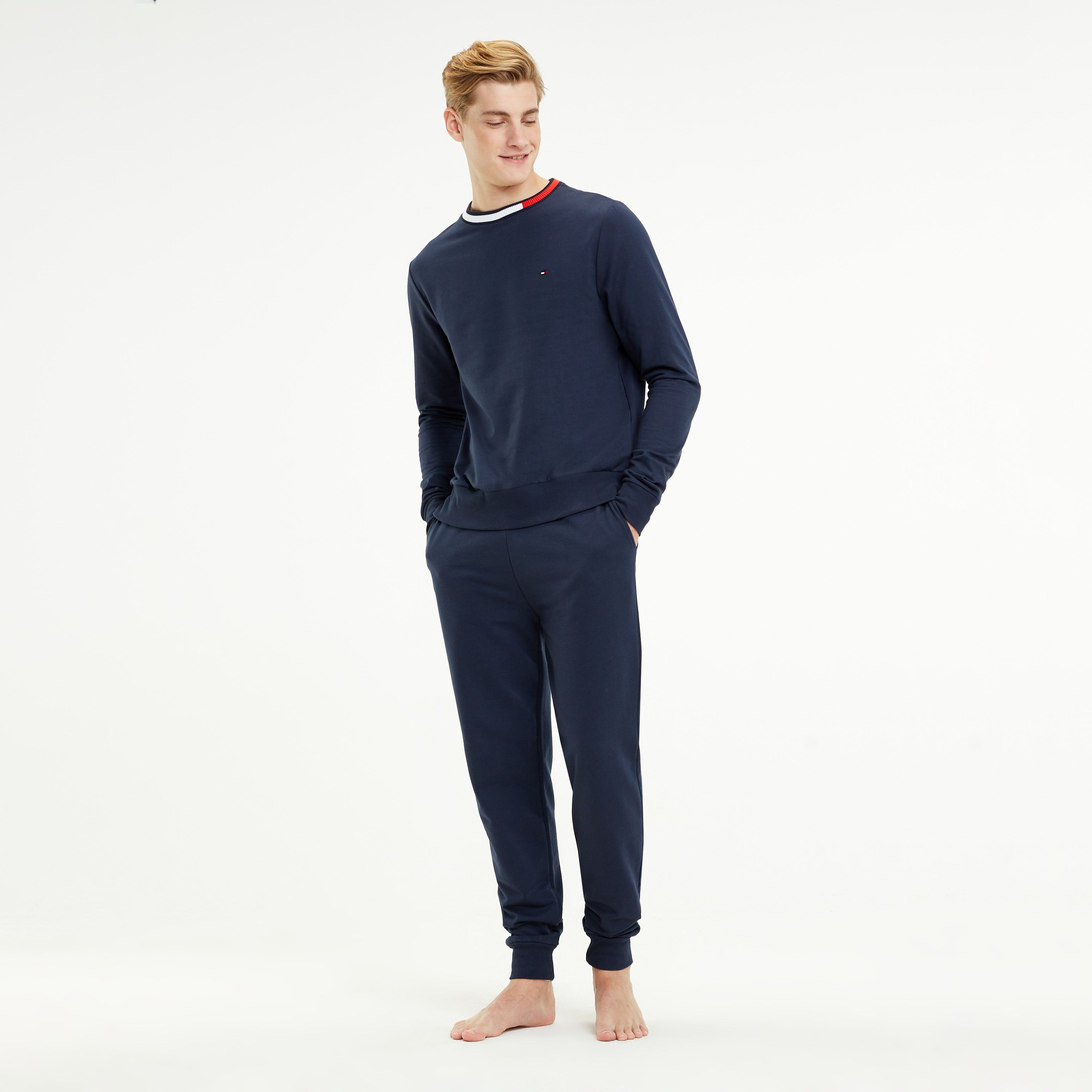 •قطن تيري ممزوج•خصر مطاطي بربّاط للتضييق•جيبان جانبيان•أطراف محاكة بستايل طولي•خصر مطاطي بألوان علم تومي هيلفيغر•تطريز علم تومي هيلفيغر على الخصر