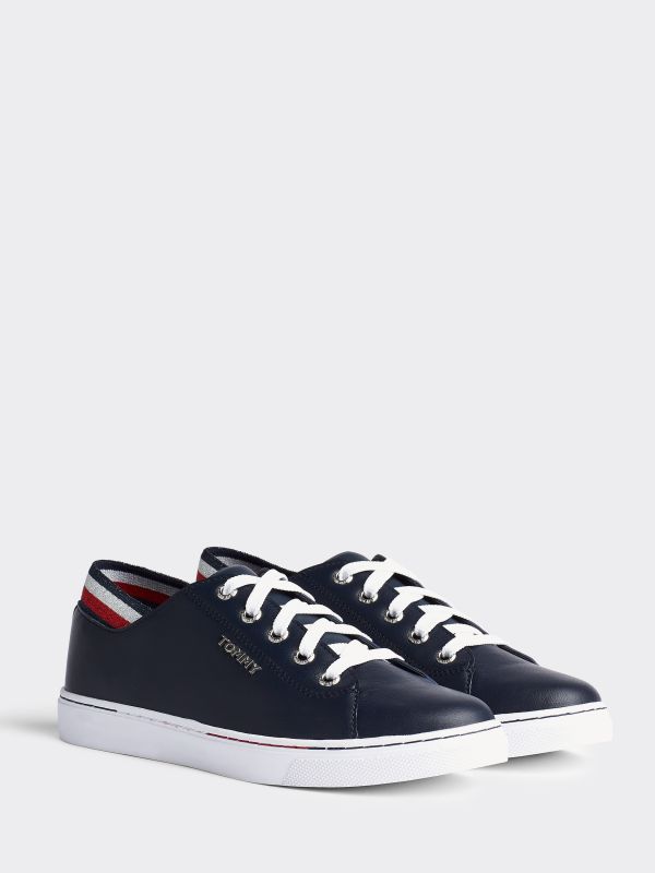• جزء علوي من مزيج الجلود • بطانة من القطن والبولي يوريثين • نعل داخلي من القطن • نعل خارجي من المطاط • جزء مطاطي في الخلف • لامع من الخلف • خياطة بلون مغاير ملائم • شعار تومي هيلفيغر معدني على الجانب • علامة تومي هيلفيغر < BR> الشكل والقصّة