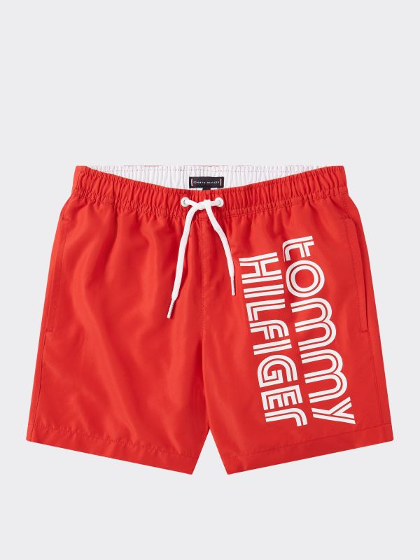شورت سباحة بربّاط على الخصر مزيّن بالشعار