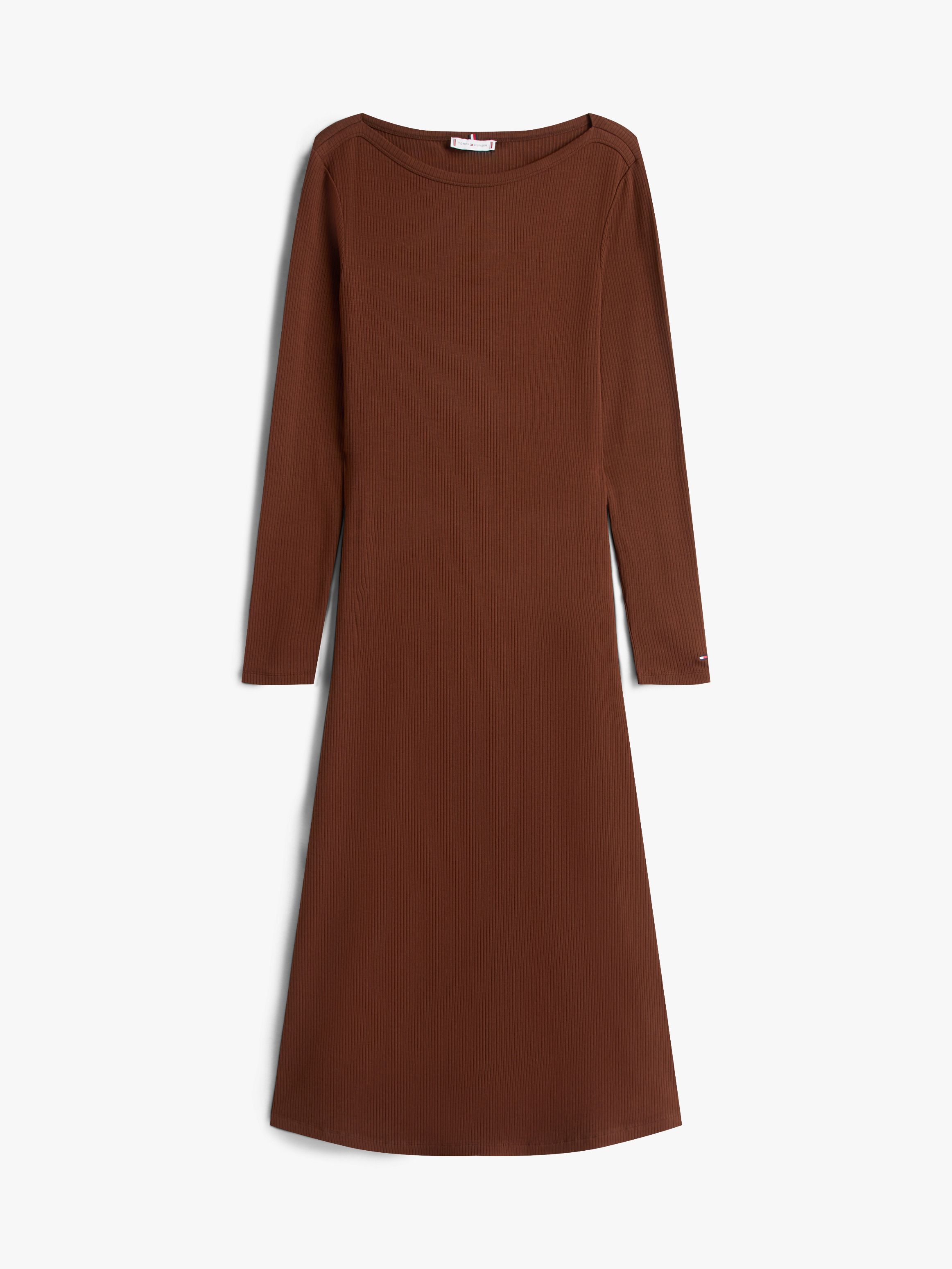 التفاصيل قماش محبوك بتفاصيل بارزة يضيف ملمسًا ومرونة لهذا الفستان الميدي، المصمم بقصة جذابة تتسع عند الخصر وتنسدل بانسيابية. أبرز التفاصيل • فيسكوز مطاطي • ملمس محبوك بارز (ريب) • ياقة قارب • شريط توقيع مميز عند الرقبة الخلفية • توقيع Tommy Hilfiger • تطريز علم تومي هيلفيغر على الكم القصة والمقاس • قصّة عادية (Regular fit) • أكمام طويلة • طول ميدي • تصميم يتسع عند الخصر وينسدل (Fit and flare) • طول العارضة 1.76 م وترتدي المقاس S الخامة والعناية • 95% فيسكوز، 5% إيلاستين التصميم فستان يجمع بين الأناقة والراحة، مثالي لمناسباتك اليومية مع لمسة عصرية كلاسيكية تضيف لك تميزاً أنثوياً.