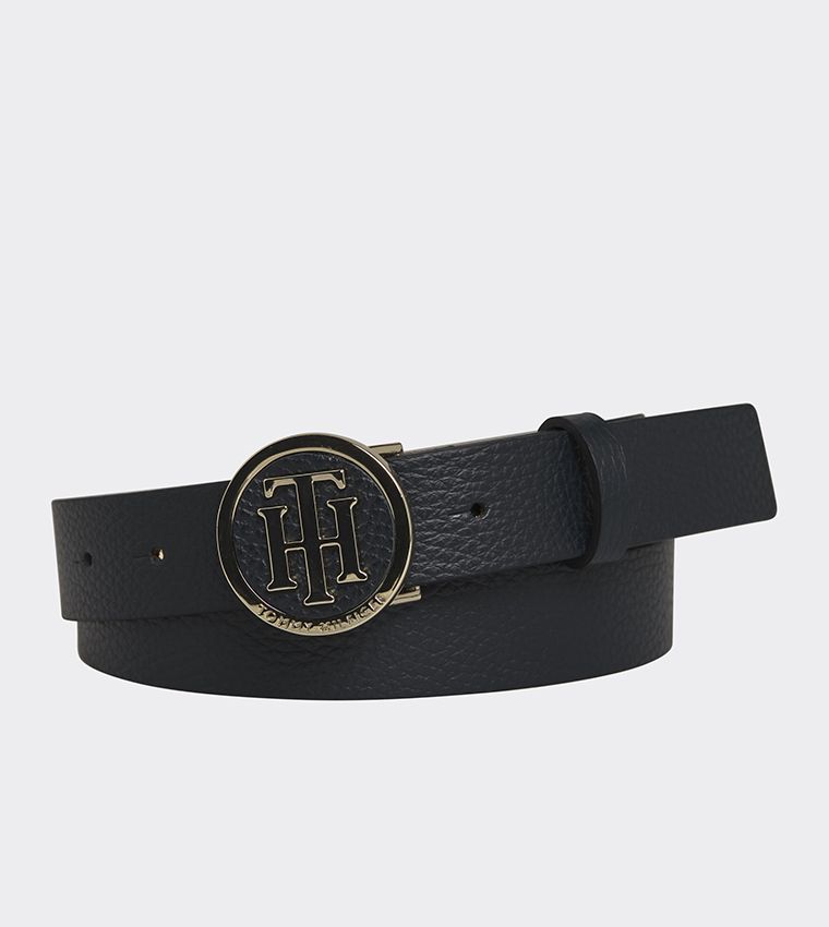 يضيف الإبزيم المستدير من المعدن اللامع لهذا الحزام الجلدي لمسة من البريق لكل يوم.