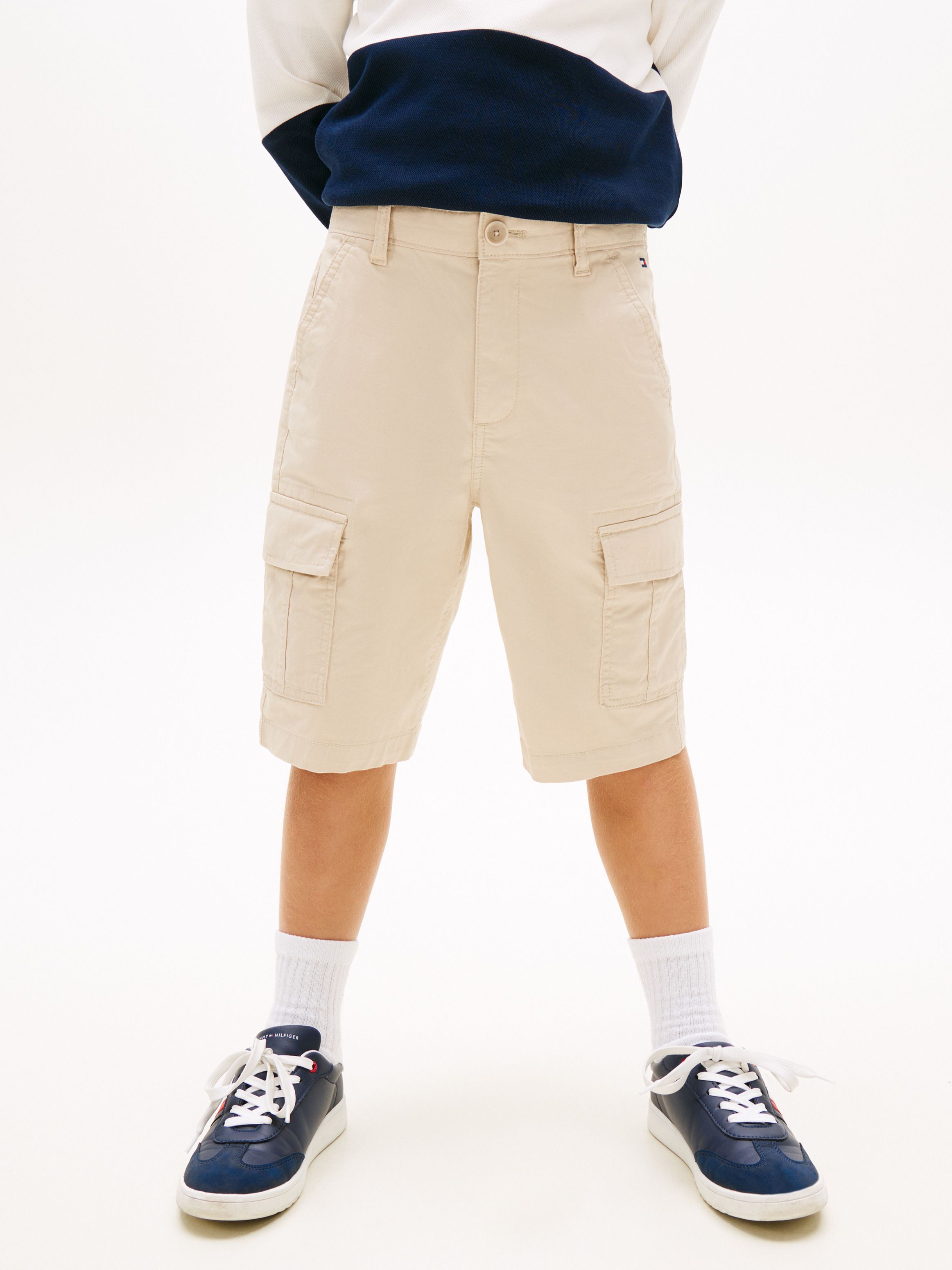 راقٍ وسهل الارتداء، يضيف شورت الكارجو المريح من قماش التويل لمسة عصرية نظيفة للإطلالات اليومية. أبرز التفاصيل تصميم كارجو مريح من قماش التويل بطابع عصري لون بيج لتنسيق متعدد مصنوع من قطن متجدد (97%) وإيلاستين (3%) تفاصيل تومي هيلفيغر المميزة الخامة 97% قطن متجدد 3% إيلاستين