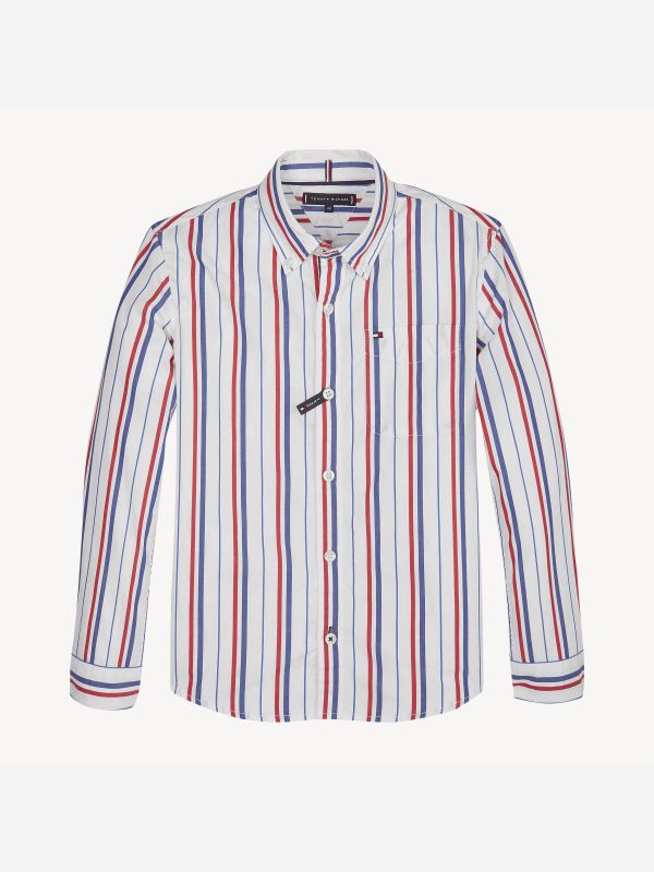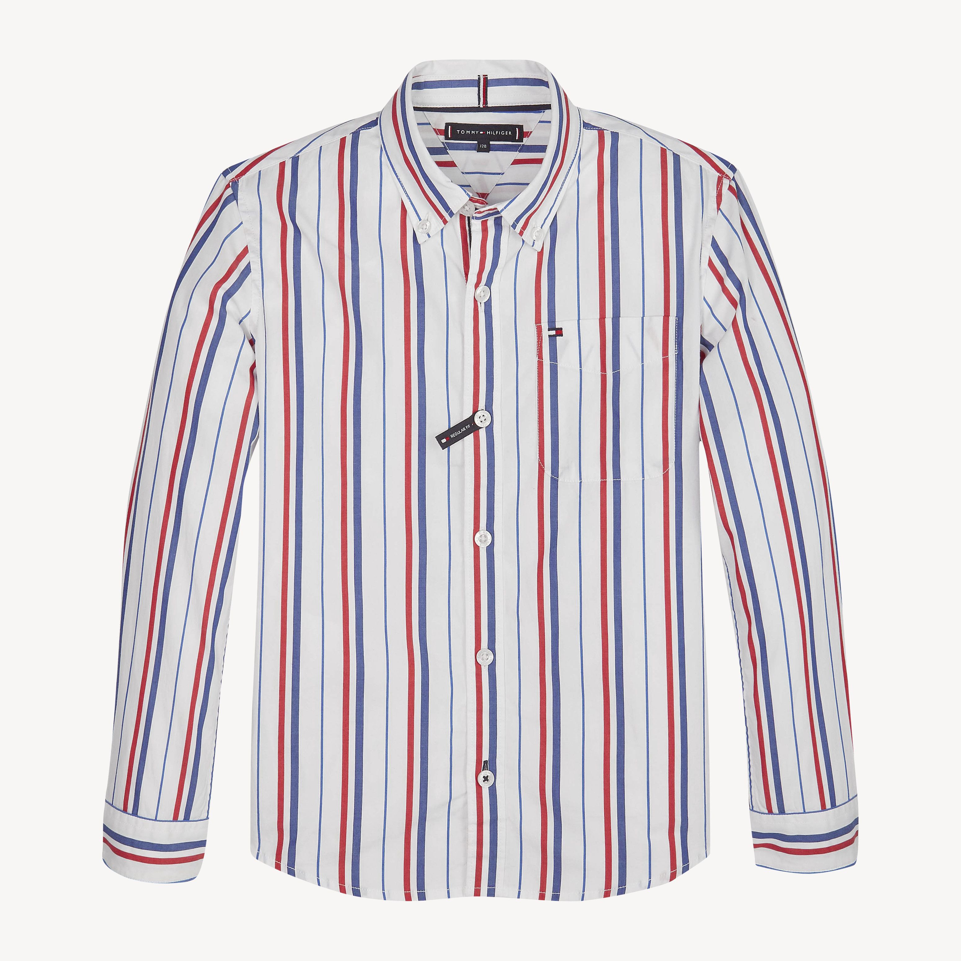تفاصيل المنتج : •قطن نقي•تصميم مخطط بشكل طولي بالكامل•أزرار للإغلاق•زرين للإغلاق على الأكمام•درزات بلون مختلف على الزر الأخير•جيب على الصدر•مزيّن بشعار تومي هيلفيغر على الياقة من الداخل•تطريز علم تومي هيلفيغر على الصدر